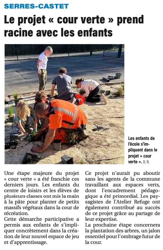 Grâce à cette dynamique collective et engagée, les cours d’écoles sont en pleine transformation et les enfants découvrent les étapes du processus avant de profiter pleinement de leur nouvel environnement de jeu.